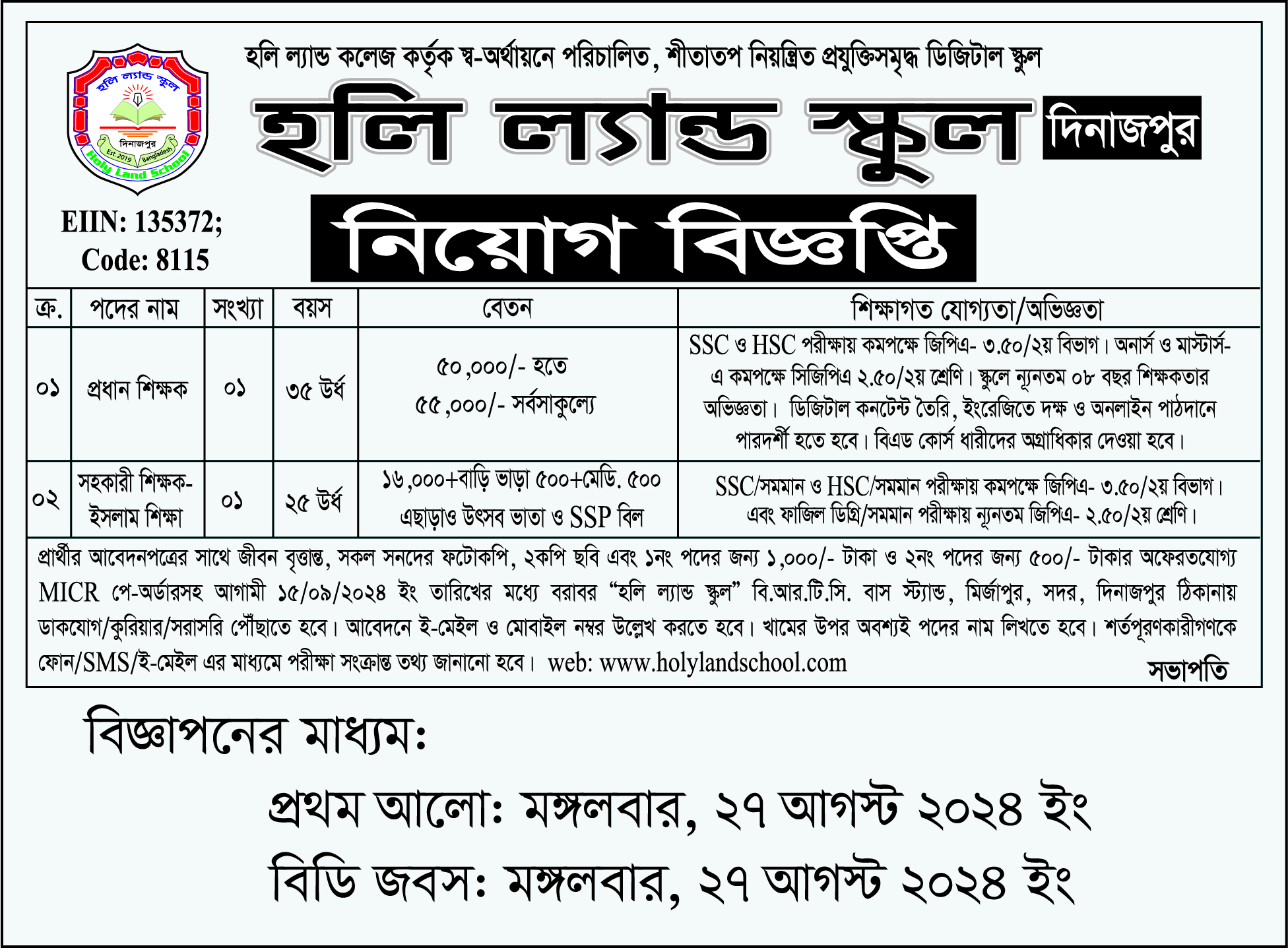 নিয়োগ বিজ্ঞপ্তি ১৫.০৭.২০২৪ খ্রি.