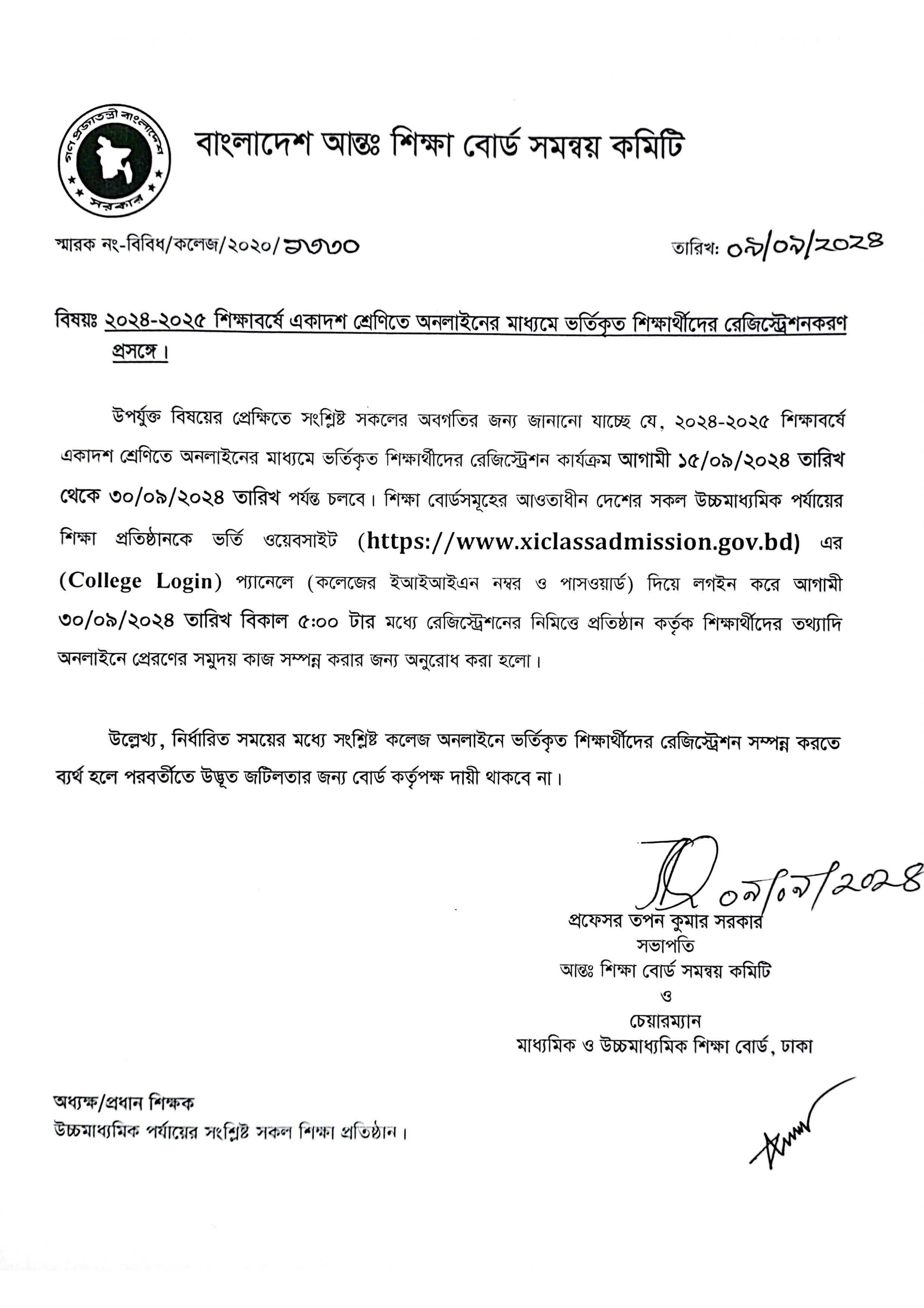 ২০২৪-২০২৫ শিক্ষাবর্ষে একাদশ শ্রেণিতে অনলাইনের মাধ্যমে ভর্তিকৃত শিক্ষার্থীদের রেজিস্ট্রেশন