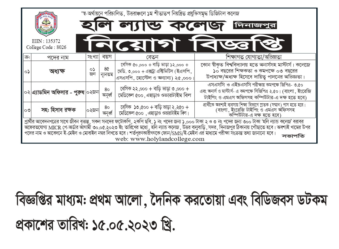 নিয়োগ বিজ্ঞপ্তি ০৫.০৩.২০২৩ খ্রি.